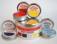 This introductory set is an ideal way to get started with encaustic painting. You can mix a multitude of colors using this primary palette. The wax medium is used to extend our paints, and the Slick Wax is used to clean your brushes and palette when you are done. This set comes packaged in a large tin that is not only good for storage but can also be used for melting larger quantities of paints, wax medium, or Slick Wax. Every Let's Get Started Set also includes an empty Hot Cakes tin and a mail-in coupon for you to redeem for free paint.